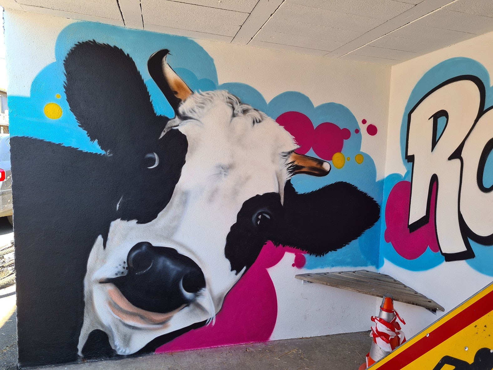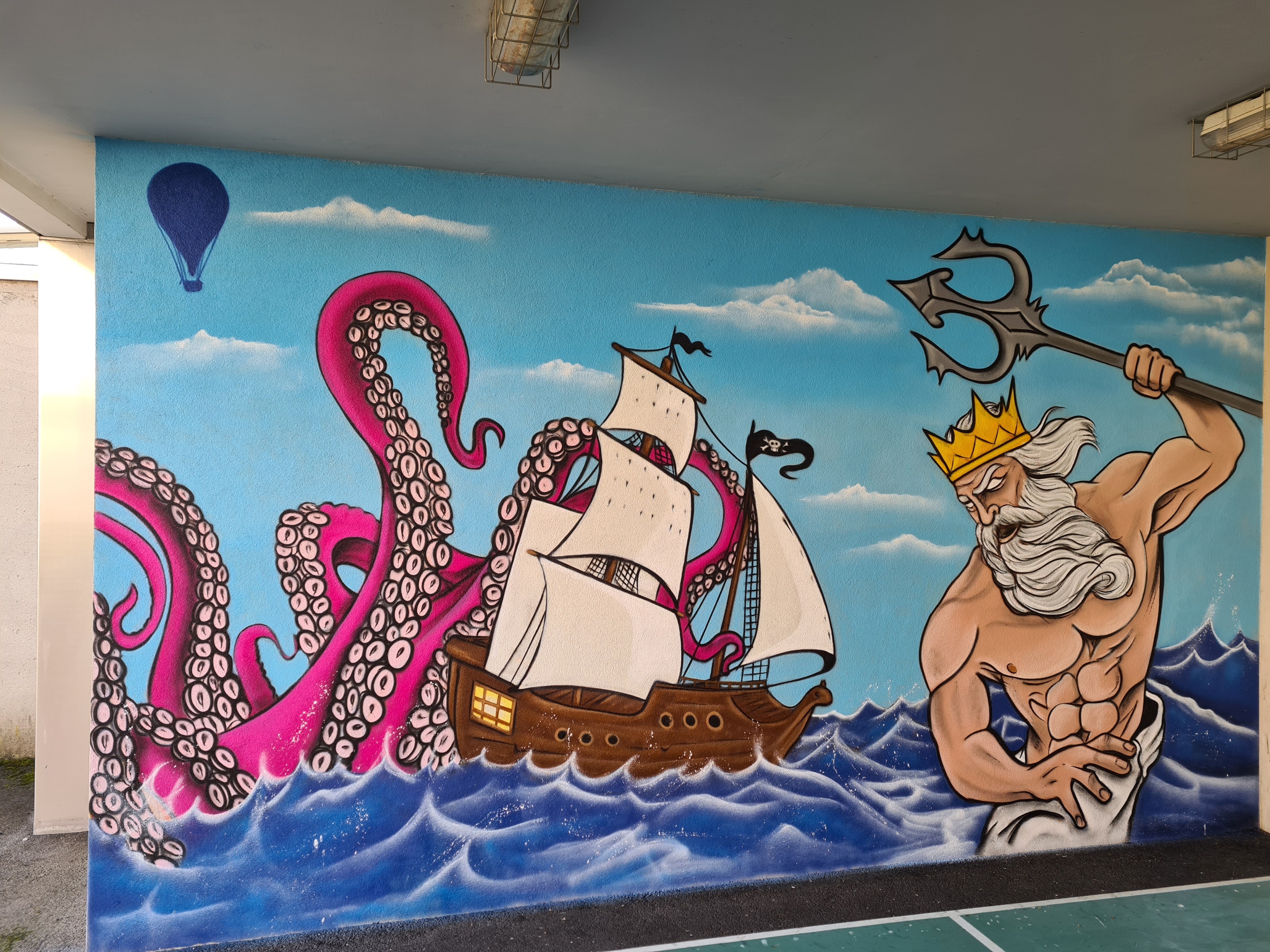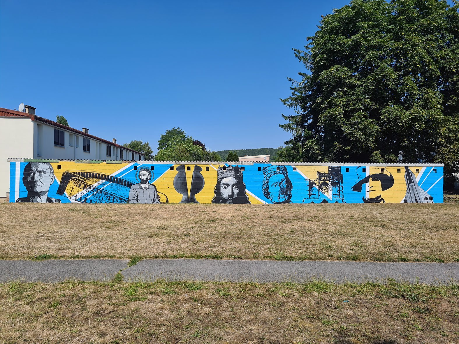 Fresque sur le patrimoine et l'histoire de la ville en partenariat avec le musée.